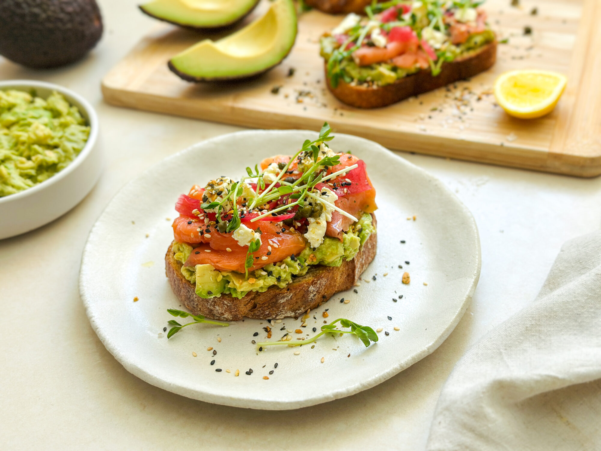 Spoon this over the toasted sourdough, top with feta then lay over the smoked salmon.